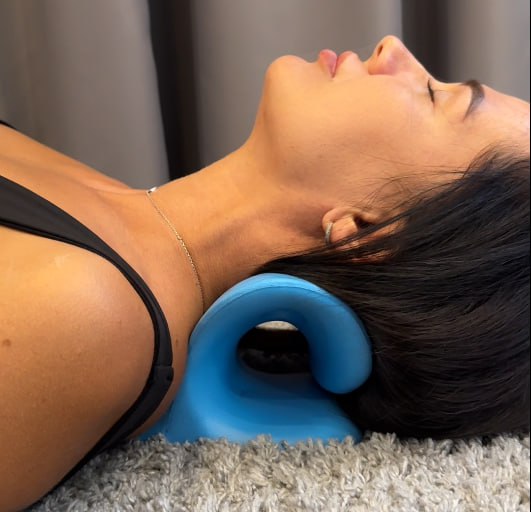 Пристрій для пасивної корекції постави шиї. Його форма дозволяє м'яко розтягнути хребці та розслабити затиснуті м'язи. Виготовлений з пружного поліуретану. Простий у використанні та не вимагає додаткових зусиль.
